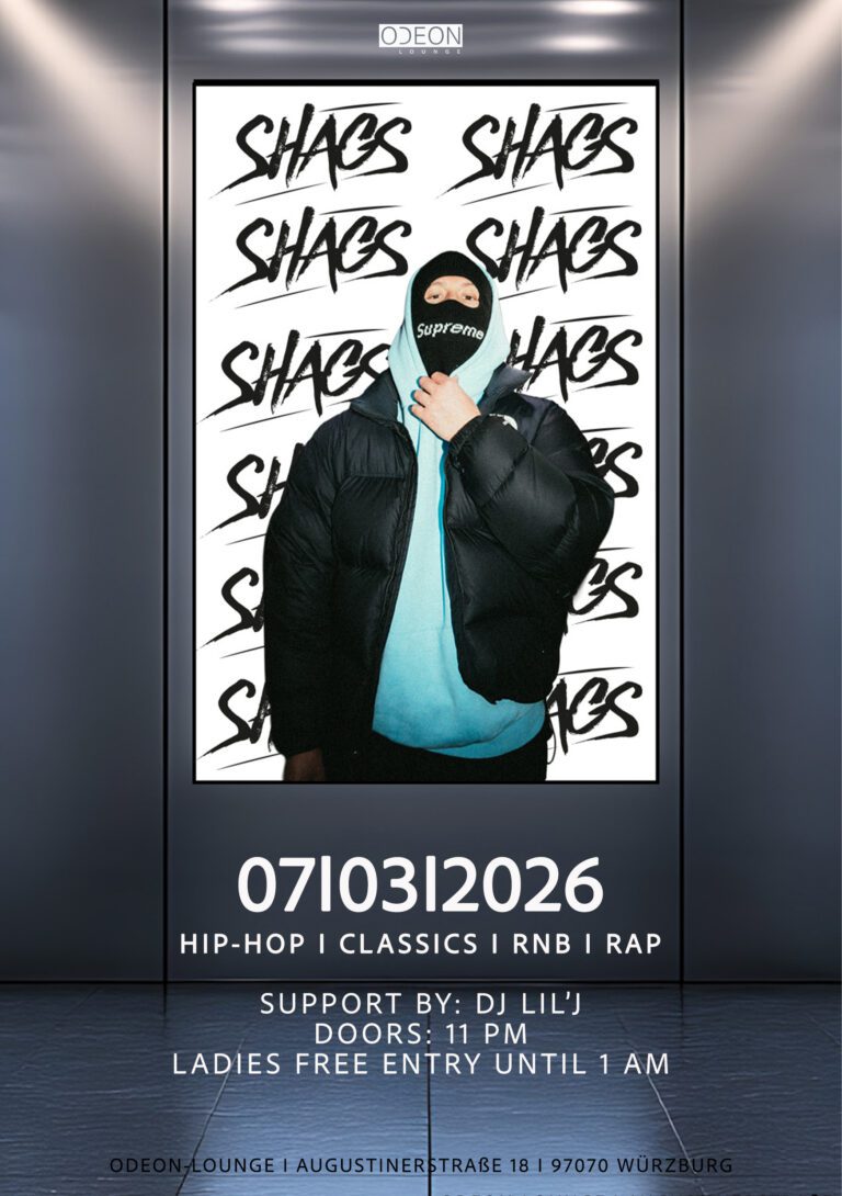 ODEON SATURDAY´S - Jeden Samstag mit den Besten DJs der nationalen und internationalen DJ - Szene! Wir freuen uns auf eine unvergessliche Nacht! Hip Hop, RnB, Rap & Classics by DJ SHAGS & support by DJ LIL‘J! ✖️ EINLASS: AB 23:00 UHR ✖️ #TISCHRESERVIERUNG: info@odeon-lounge.de