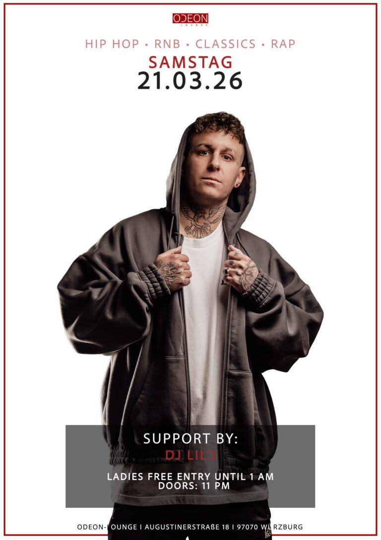 ODEON SATURDAY´S - Jeden Samstag mit den Besten DJs der nationalen und internationalen DJ - Szene! Wir freuen uns auf eine unvergessliche Nacht! Hip Hop, RnB, Rap & Classics by DJ T-BRIGHT & support by DJ LIL‘J! ✖️ EINLASS: AB 23:00 UHR ✖️ #TISCHRESERVIERUNG: info@odeon-lounge.de